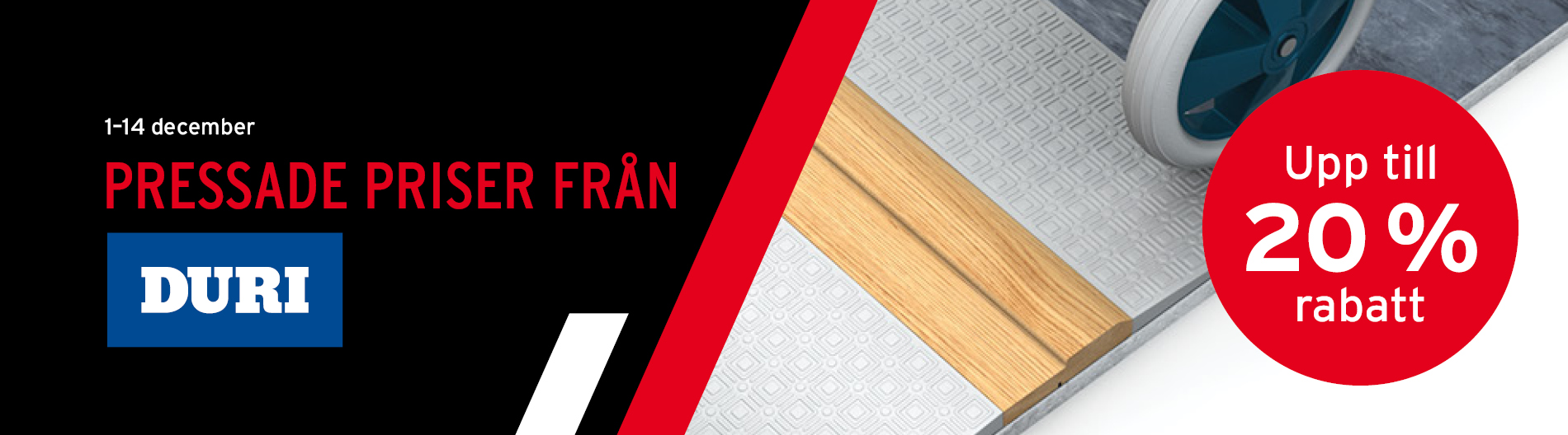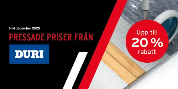 Passa på att uppgradera med kvalitetsprodukter från Duri! Under kampanjperioden 1–14 december erbjuder vi riktigt bra priser på tröskelramper, metallister, hörnskydd, plastlister och trälister.