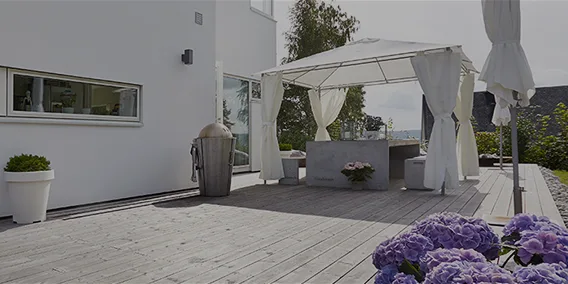 Kebony Character är en trall med inslag av kvist för att ge tralldäcket ett levande utseende.