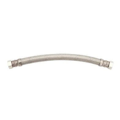 Flexi anslutningsslang för tappvattensystem. Slang av FLX, rostfri omflätning. Koppling i AZH-mässing CW626N (avzinkad). Invändigt gängade löpmuttrar. Temperaturområde 0–70 °C. Tillfällig maximal temperatur 95 °C. Max tryck: 10 bar. Flöde 29 liter/minut.