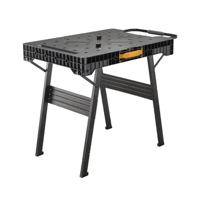 Hopfällbar arbetsbänk med stor arbetsyta (85 x 60 cm) och kraftiga metallben. Kompatibel med tvingar i alla storlekar. Max 450 kg. Fälls ihop på bara några sekunder och är lika enkel att fälla upp samt bära. Passar för tvingar i både vertikalt och horisontalt läge. Handtag för att enkelt transportera och bära bänken. FMST1-75672