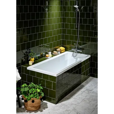 Art. nr 007296574 | Art. namn. Badkar Picto 1700, för inbyggnad, med ben & bottenventil | Volym/Innehåll 270 l | Längd 1 700 mm | Bottenlängd (liggande längd) 1 200 mm |