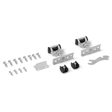 Robust portbeslag för dörrar och portar med en vikt upp till 75 kg. Komplett hjulsats som innehåller dubbelhjul, 2 skjutdörrsrullar, 2 stoppbeslag, 1 bottenstyrklack, träskruvar och monteringsanvisning. Hjulen är utrustade med både kul- och glidlager. Tillhörande skenor, artikelnummer 31315 och 31316.