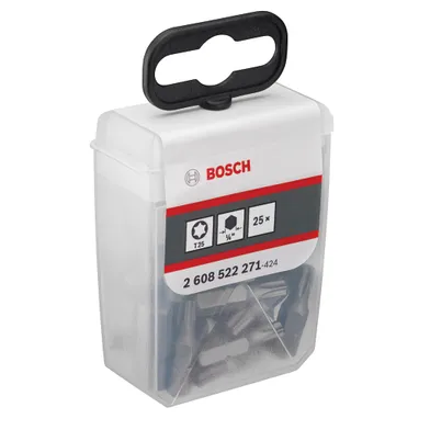 Art. nr 006102431 Utgående | Art. namn. Bits Torx 25 mm Extra Hard T25, 25-pack (TicTac Box) | Antal per förpackning 25 | Storlek (TX) 25 | ||