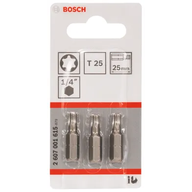 Art. nr 003643921 | Art. namn. Bits Torx 25 mm Extra Hard T25, 3-pack | Antal per förpackning 3 | Storlek (TX) 25 | |