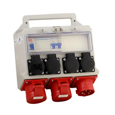 Byggcentral m. jordfelsbrytare IP44, 16 A/400 V, Grå