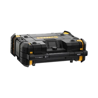 TSTAK-kompatibel byggradio med integrerad laddstation. IP54 klassad - damm- och vattenavvisande. Radion har en solid konstruktion med stora stötdämpande gummerade slagzoner. Förvaringslåda som är lätt att manövrera med en hand. 6 (4 + 2) högtalarelement med en kombinerad uteffekt på 45 W. 2 mellanregisterhögtalare fram och 2 bak. Färgskärm. När den ansluts till en nätkälla kan 10,8 V / XR 18 V eller FLEXVOLT 54 V-batterier laddas. USB-laddning och AUX-utgång. App för iOS och Android.