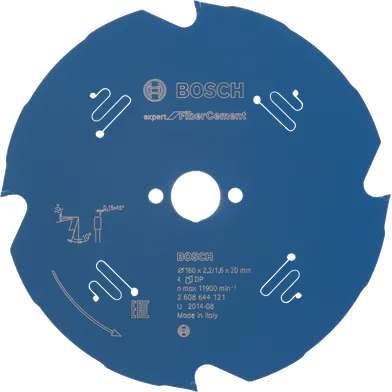 Art. nr 006188438 | Art. namn. Cirkelsågklinga Expert Fibercement 160/20 mm, 4T | Diameter sågblad/klinga 160 mm | Antal tänder 4 | Lämplig för trä - | Lämplig för metall - | Klinghålsdiameter (mm) 20 | Tandform TCG | Max. varvtal 11 900 1/min | Skärbredd 2.2 mm | |