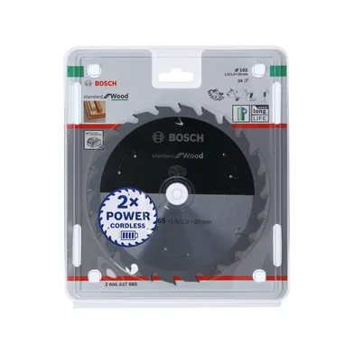 Art. nr | Art. namn. Cirkelsågklinga Standard f. batteridrift, Trä 165/20 mm, 36T | Diameter sågblad/klinga 165 mm | Antal tänder 36 | Klinghålsdiameter (mm) 20 | Max. varvtal 9 500 1/min | Skärbredd 1.5 mm | ||