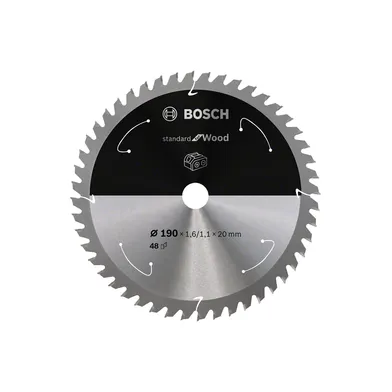 Art. nr | Art. namn. Cirkelsågklinga Standard f. batteridrift, Trä 190/30 mm, 48T | Diameter sågblad/klinga 190 mm | Antal tänder 48 | Klinghålsdiameter (mm) 30 | Max. varvtal 7 900 1/min | Skärbredd 1.6 mm | ||