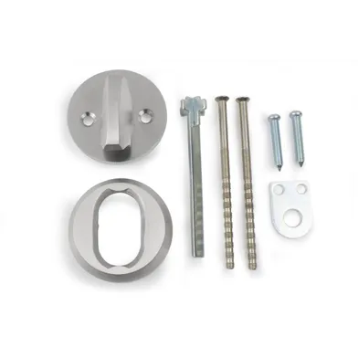 Cylindervredsats av rostfritt syrafast stål. Exklusiv och modern design med slimmad look. Levereras med cylindervred och cylinderring Universal. Utvändig cylinderring 9 mm + förhöjningsring 7 mm. Om cylindern sticker ut 6-11 mm från dörrbladet monteras bara skylten. Om cylindern sticker ut 12-18 mm från dörrbladet monteras både skylten och förhöjningsringen. Levereras med 90 mm tryckesskruv för genomgående fastsättning. Passar till dörrtjocklek 38-90 mm.