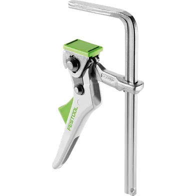 För säker fixering av styrskenan, sätts i nedre spåret. Säker fixering med MFT 3. Formen på fästbygeln är anpassad till styrskenornas spår, multifunktionsbordets profiler och till Precisio. Tack vare spärren lossas tvingen inte ens vid lätta vibrationer.