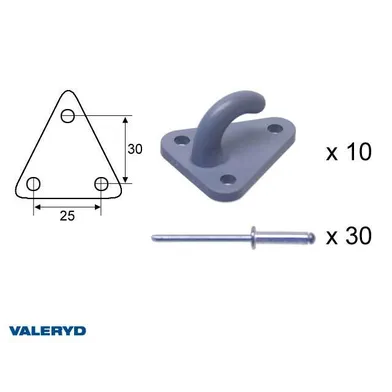Fästkrok t. lastnät inkl. popnit Plast, 10-pack