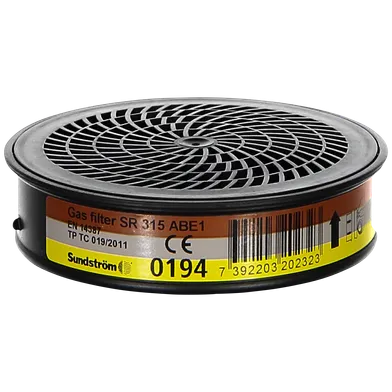 Art. nr 002765152 | Art. namn. Gasfilter Sundström ABE1 315, Brun/Grå/Gul färgkod | Storleksbeskrivning Klass 1; Brun/G... | |