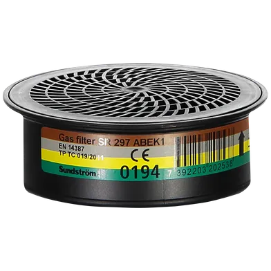 Art. nr 002765154 | Art. namn. Gasfilter Sundström ABEK1 297, Brun/Grå/Gul/Grön färgkod | Storleksbeskrivning Klass 2; Brun/G... | |