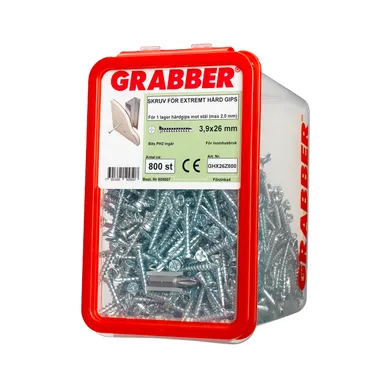 Användningsområde. Gipsskruv avsedd för montering av extremt hård gips- och fibergipsskiva mot stålreglar med godstjocklek 0,46-2,00 mm och träreglar. För 1 lager gips. Inomhusskruv. Beskrivning. Skruven är tillverkad av härdat stål med borrspets som förborrar. Hybridgänga™. Kryssgrepp Ph2. Korrosivitetsklass C1 . Blankförzinkad ytbehandling.
