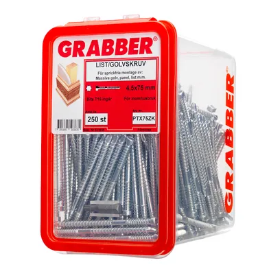 Art. nr 006045032 | Art. namn. Golv- & listskruv m. borrspets & stödgänga Trä/Stål 4,5x75 mm, F... | Diameter 4.5 mm | Längd 75 mm | |