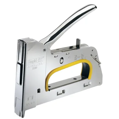 Kraftfull häftpistol för krävande användningsområden och professionellt bruk med förlängd nos. Nosens form gör pistolen accessbar i trånga och ojämna utrymmen. R30E är utformad för att ge högsta precision och är uppskattad för sin överlägsna prestanda och livslängd. Häftpistolen har en ny patenterad funktion med slagstyrkeställare i 3 steg som gör pistolen upp till 40 % lättare att avfyra. R30E är lämplig för omfattande arbeten såsom fastsättning av tätlister, tjockare textilier, mattor, läder, kanvas samt tunnare textilier.
