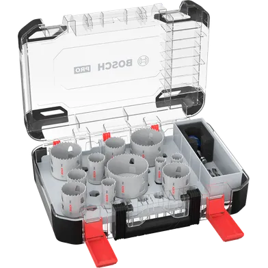 Hålsåg Pro har förbättrad tanddesign för snabba och jämna snitt och högkobolt-HSS-legeringständer för lång livslängd. Den tacklar stålbeklädnad och gipsvägg effektivt. Power Change plus gör det enklare att byta hålsågar och centreringsborr. Innehåller 20 / 22 / 25 / 32 / 35 / 40 / 44 / 51 / 60 / 64 / 76 mm & power changer inkl två multiborr