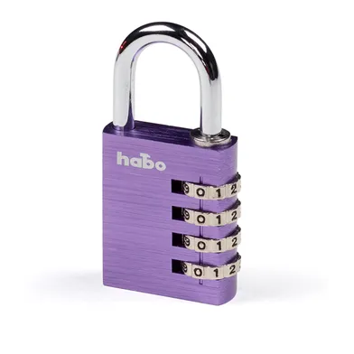Art. nr 006741870 | Art. namn. Hänglås 203, kodlås - Alu. 38x6 mm, CC 26 mm, Lila | Färgnamn Lila | Bygel höjd 26 mm | |