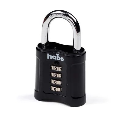 Art. nr 006741865 | Art. namn. Hänglås 203, kodlås - Zink 55x8 mm, CC 26 mm, Svart | Färgnamn Svart | Bygel höjd 34 mm |
