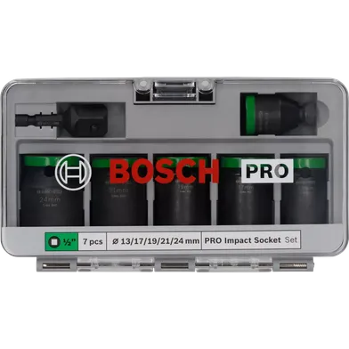Set av värmebehandlat CRMO (krom-molybden) stål och gav med tjocka väggar för att se till att de motstår högt vridmoment. Hylsorna är lasermärkta och färgkodade så att du direkt kan se vilken du behöver. De har ett spår och ett genomgående hål för att fästas på mutterdragare. Adaptrarna gör att du kan använda hylsorna med mutterdragare och sexkantsbits med hylsnycklar för alla lättare uppgifter under 80 Nm vridmoment.