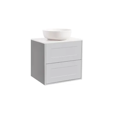 Art. nr 7401137 | Art. namn. Kommod Gabriella 60 grå med vit bänkskiva och runt vit matt tvät... | ||