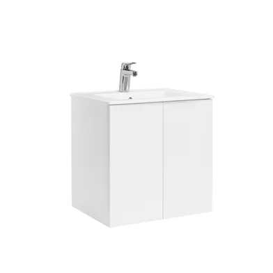 Isella Aqua underskåp med Ariella tvättställ i mineralkomposit. Underskåpen är helt vattentåliga i termoplast med 2 mjukstängande dörrar. Levereras färdigmonterade. Handtag beställs separat.