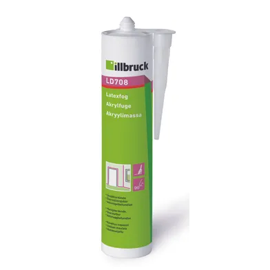 Latexfog illbruck. Lättsprutad. Luktsvag. Snabbhärdande. Övermålningsbar. Antimögelbehandlad. Limning av gipsskivor. Uppfyller klass 12,5 E. Akrylfogmassa. Lättapplicerad, luktsvag och övermålningsbar. Användningsområde: För tätning och mjukspackling av fogar och sprickor med små fogrörelser inomhus mot trä, gips, puts, tegel, betong, cellplast, kork, PVCu, metall och målade ytor. Limning av gipsskivor mot stålreglar enligt skivleverantörens anvisningar. För enklare tätning kan massan även användas utomhus på fasad t ex sprickor i klädselpanel etc.
