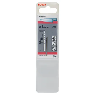 Art. nr 004647187 | Art. namn. Metallborr HSS-G 1,0x34 mm, 2-pack | Antal per förpackning 2 | Diameter skaft 1 mm | Längd totalt 34 mm | Längd skäregg 12 mm | Diameter borr 1 mm | |
