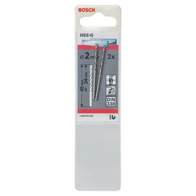 Art. nr 004647189 | Art. namn. Metallborr HSS-G 2,0x40 mm, 2-pack | Antal per förpackning 2 | Diameter skaft 2 mm | Längd totalt 49 mm | Längd skäregg 24 mm | Diameter borr 2 mm | |