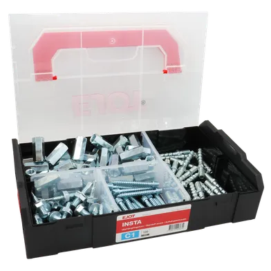 Innehåll: 20st Borrskruv INSTA 6,3x50, 20st Betongskruv INSTA 6,0x55, 20st Träskruv INSTA 6,0x50, 60st Muttrar.