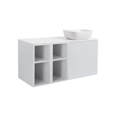 Art. nr 7417014 | Art. namn. Möbelpaket Isella grå inkl två öppna sidoskåp, vit bänkskiva & v... | ||