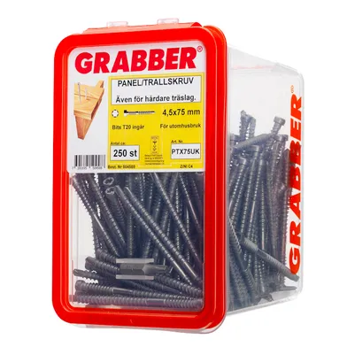 Art. nr 006087668 | Art. namn. Panelskruv PTX m. borrspets C4 4,5x75 mm, 250 st/frp | Diameter 4.5 mm | Längd 75 mm |