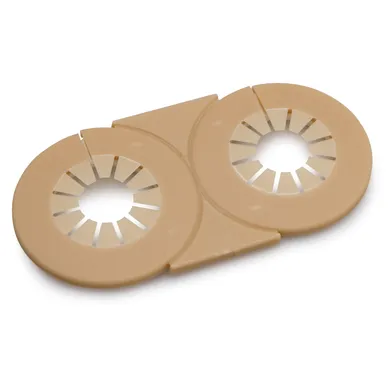 Golvbrickor för avgränsning mellan rör och golv exempelvis värmerör. Med dubbelhäftande tejp vilket gör att denna även går att sätta i tak. För c/c mått 40 resp. 60 mm men delbara vid andra mått. Vid delning skär med t ex mattkniv i det markerade spåret.