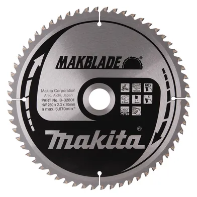 Art. nr 008609377 | Art. namn. Sågklinga Trä B-32801 60T, 260x30x2,4 mm | Diameter sågblad/klinga 260 mm | Antal tänder 60 |