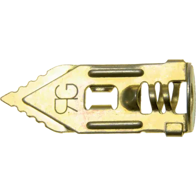 Fästelementet slås enkelt in med hammare i underlaget utan förborrning. Passande skruv är trä- eller montageskruv Ø 3.5–4.5 mm. Använd en skruv som är minst 30 mm lång plus tjockleken på materialet som ska fästas. Gulförzinkad.