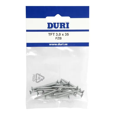 Art. nr 004902022 | Art. namn. Skruv TFT 3x35 mm, Förzinkad, 20 st/frp | Färgnamn - | Antal per förpackning 20 | Längd 35 mm | |