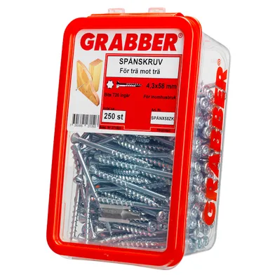 Art. nr 004415584 | Art. namn. Spånskiveskruv Trä 4,3x58 mm, FZB, 250 st/frp | Diameter 4.3 mm | Längd 58 mm | |