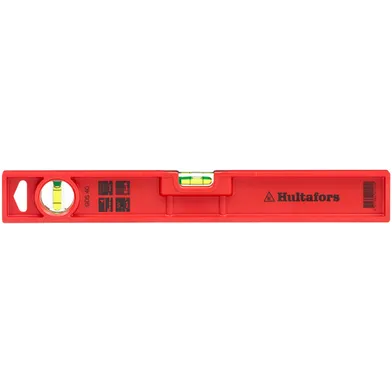 Ett slagtåligt vattenpass i röd polystyrenplast som tål temperaturer mellan –15°C och +60°C. Okrossbara blocklibeller med mycket hög genomskinlighet och hållbarhet. Våglibell med förstoringsglas och självlysande reflektor. Lätt att göra rent från cement.