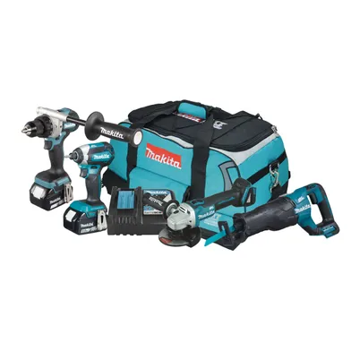 Sladdlöst 18V combokit. Innehåller DDF486Z borrskruvdragare, DTD153Z slagskruvdragare, DGA504 vinkelslip samt DJR187Z tigersåg. Levereras med 2 st 5,0 Ah batterier med 45 min laddningstid, laddare samt väska.